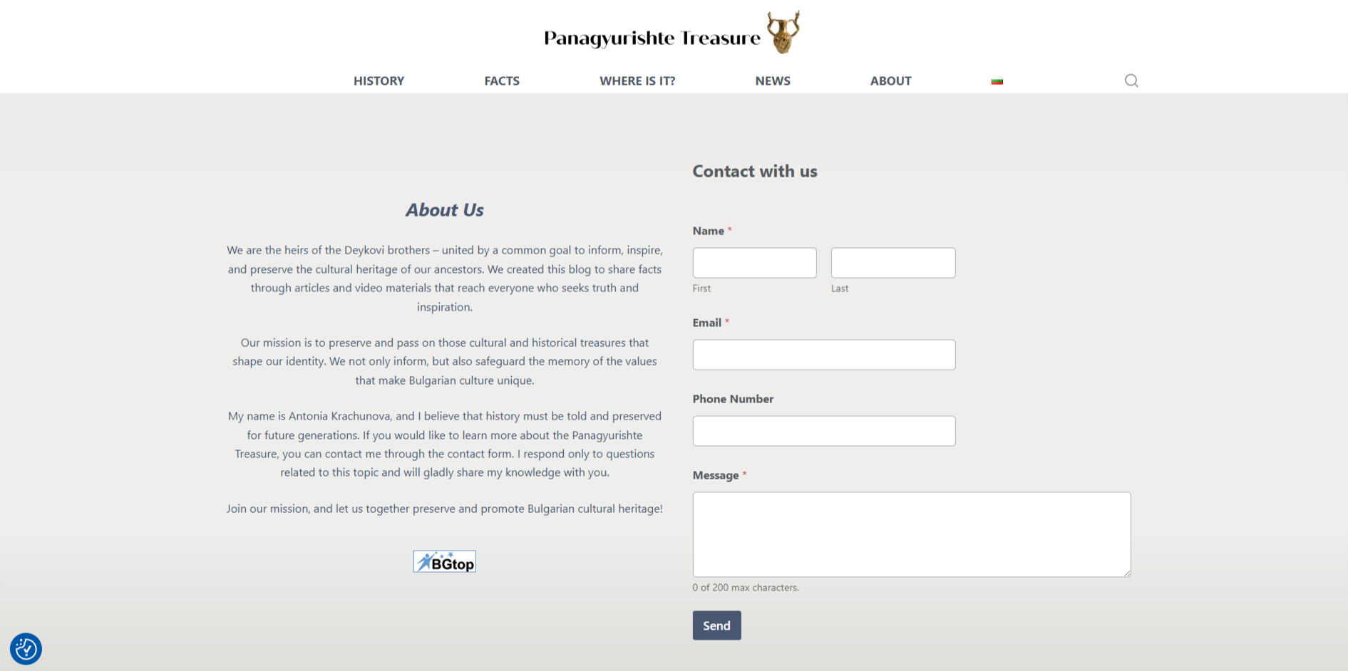 I launched and manage Panagyurishte Treasure, a website and blog dedicated to the history and cultural heritage of the Panagyurishte Gold Treasure. The site offers detailed information, historical insights, and educational resources while also featuring blog articles about one of Bulgaria’s most significant discoveries.
