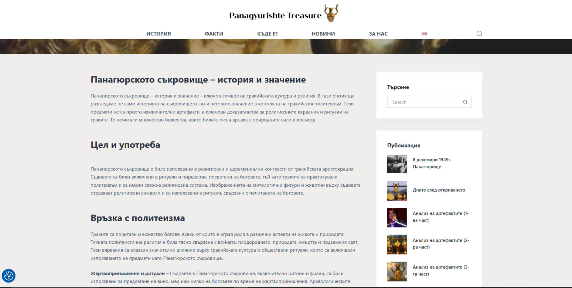 I launched and manage Panagyurishte Treasure, a website and blog dedicated to the history and cultural heritage of the Panagyurishte Gold Treasure. The site offers detailed information, historical insights, and educational resources while also featuring blog articles about one of Bulgaria’s most significant discoveries.